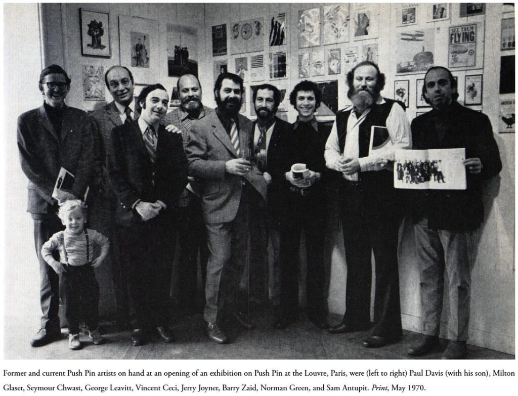 Other notable projects include program album layouts for musicians such as Peter, Paul & Mary, Simon & Garfunkel, and Carly Simon. This body of work garnered him awards from various trade organizations, including Art Director’s Club, Type Director’s Club, Society of Publication Designers, and AIGA. A collaborator in numerous studio exhibitions and retrospectives, in 1970 he participated in the creation and installation of “The Push Pin Style”. Traveling through Tokyo, Brazil, and various European cities – this became the first American graphic design studio show to be presented at the Louvre.